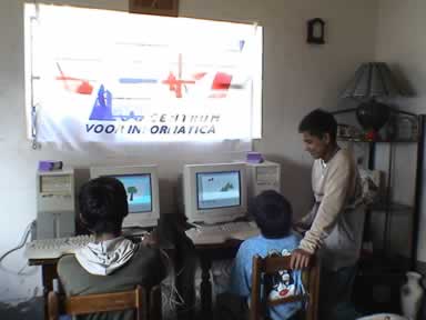 et là arrive une petite classe d’ordinateurLà est la pharmacie,
