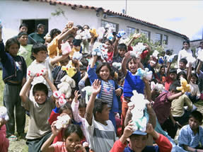 waar ze voor bestemd waren: de verrukte kinderhanden in Ayacucho.