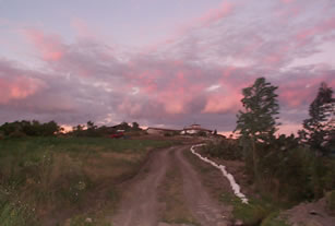 we rechts de weg verlaten en hobbelend het weeshuis bereiken,