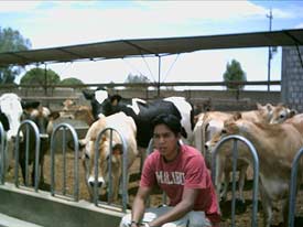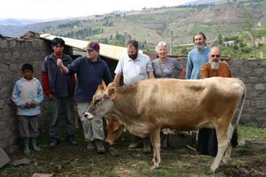 l'argent que nous avions collecté étaient entretemps arrivées à El Refugio. Orlando et Edwin avaient été les chercher à Andahuaylas et s'en étaient excellemment tirés dans leurs marchandages: ils ramenèrent non pas 2 mais 3 vaches Jersey (dont 2 gravides) et 2 génisses Holstein. De ce fait, l'exploitation compte maintenant deux races laitières supplémentaires. En plus de cela, lors du marchandage, 4 jeunes taurillons Jersey avaient été offerts, ils auraient de toute façon été sacrifiés. Ils seront engraissés et abattus le moment venu pour être consommés. Tous ces animaux nouvellement arrivés (les Holstein et les Jersy), avaient d'ailleurs traversé moult épreuves avant d'arriver à destination. Pendant leur voyage d'Andahuayles à Ayacucho,
