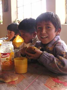 Lorsque, le lendemain, le soleil se levait sur les Andes nous avons pu admirer l'ampleur du travail effectué par Père Thomas. jamais les mots ne pourraient le décrire. Il avait transformé cette colline rocailleuse stérile en hospice chaleureux pour les plus pauvres parmi les pauvres... une ouverture nouvelle qui pourrait leur donner une bonne orientation dans la vie. Les jeunes y bénéficient d'une éducation solide, d'une bonne scolarité, et de tout ce dont un enfant peut avoir besoin, amour et tendresse. L'équipe de soutien est composée exclusivement de Péruviens qui travaillent la main dans la main: le projet agricole leur permet de subvenir à un grand nombre de leurs propres besoins, le bétail (avec les vaches nouvellement achetées grâce aux dons de nos généreux donateurs) aussi est appelé à leur ouvrir des potentiels nouveaux . à dire vrai, la foi a transporté des montagnes ici, un mont stérile s'est vu insuffler un souffle neuf.